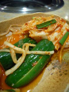 先ずは「ナムル」と「キムチ」が来たところで全員を待たずに乾杯!