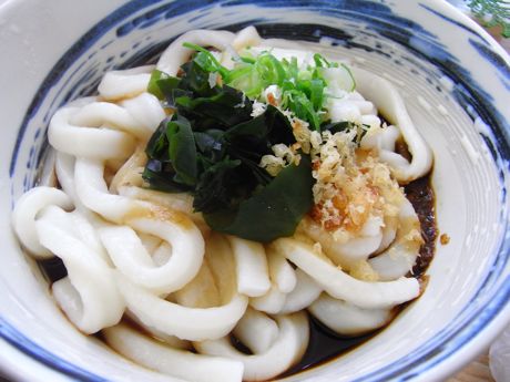 真っ白なうどんに濃いめのタレ、薬味は至ってシンプル。