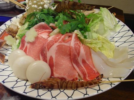 因みに後ろの方に見えている海老さんはまだ生きていて、鍋に入れられるまで突然ハネてはビビらされました (^^;;;