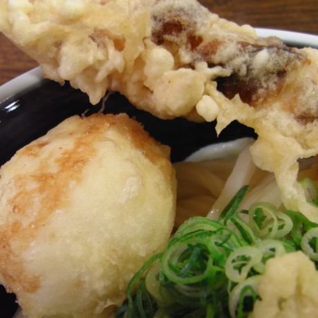 揚げたての半熟玉子天とちくわ天。