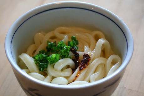 超シンプルな石垣島ラー油醬油うどん、略して「石ラー醬油うどん」。