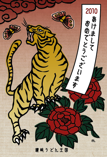 明けましておめでとうございます。 立派なトラの年賀状ですね。 縁起いいです♪ 今年もブログの更新を楽しみにしています。年末からの記事をまとめて拝見しました。年越しそばは自作ですか!すごいです。そばにもこだわるところがさすがです。 私は乾麺を茹でました(汗) 今年1年、すばらしい年でありますように!! 返信