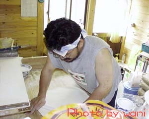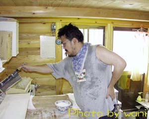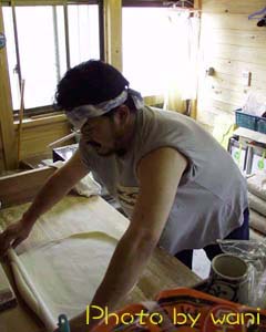 さて、長いことひっぱってようやくうどん打ちの開始です。 |