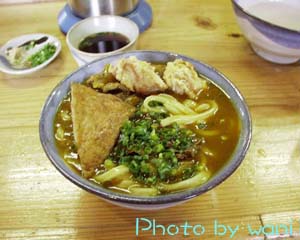 | [かしわ天カレーうどん] 僕のはりやさんのお薦めメニューは、 ・かしわ天ざる なんですが、これはその2つをMIXした カレーうどんの為、出汁の下が見えませんが、 |
